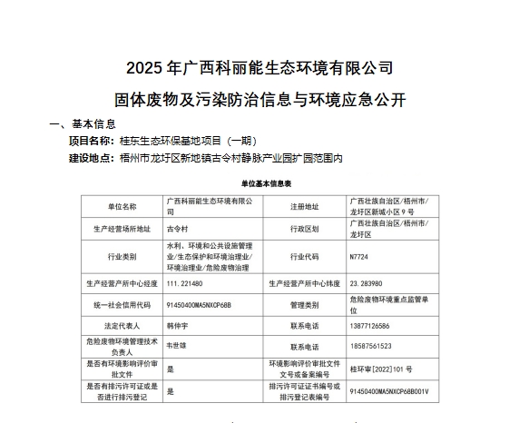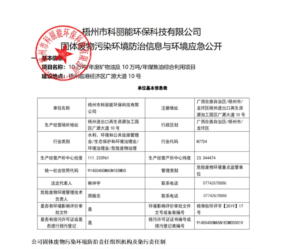 梧州市科丽能环保U技有限公司成立?018q??0日,位于梧州市龙圩区梧州q口再生资源加工园区内,业务늛危险废物的综合利用与环保技术服务支持。目前已具备废矿物aQHW08Q、煤焦aQHW11)两大cd险废物经营资质,危险废物处置能力辑ֈ20万吨/q_(d)其中废矿物a10万吨/q、煤焦a10万吨/q?br>